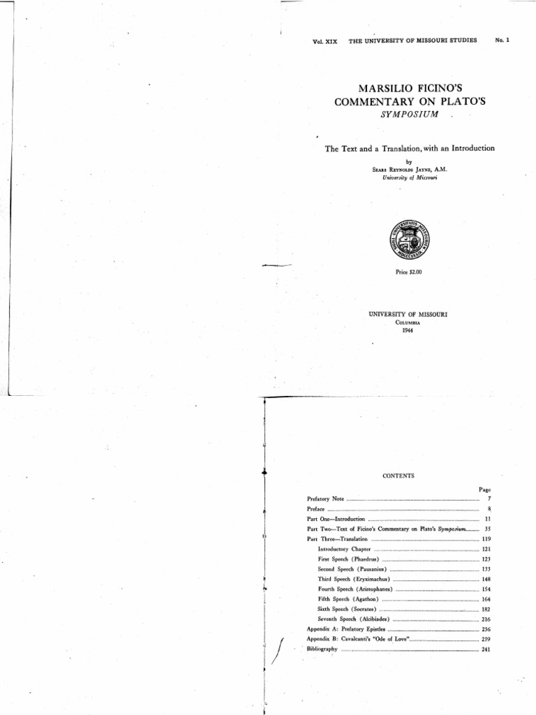 Marsilio Ficino S Commentary On Plato S Symposium Sears Reynolds Jayne A M Pdf
